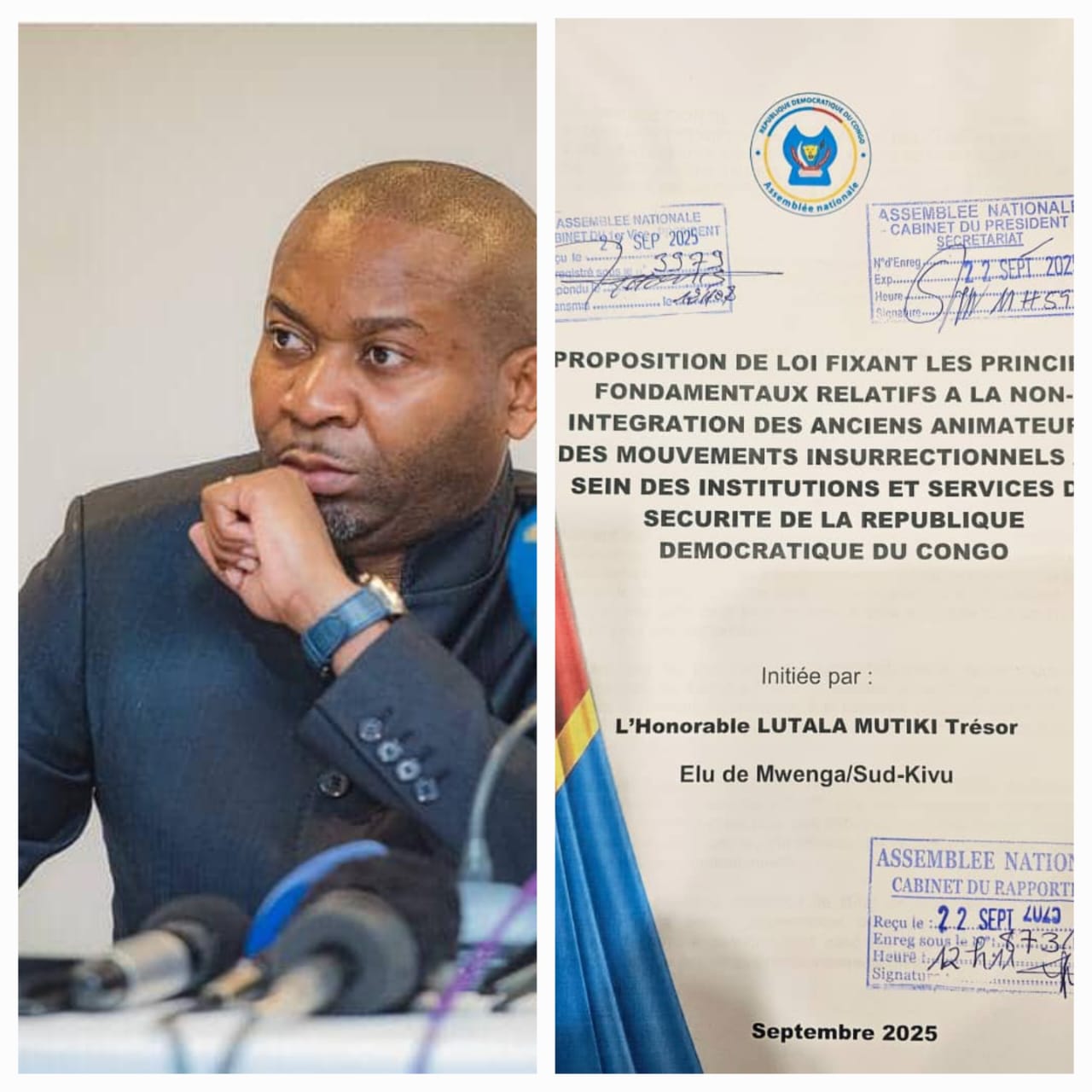 C’est une ligne rouge que l’on croyait imprononçable dans le débat politique congolais. Ce lundi 22 septembre 2025, l’honorable Trésor Lutala Mutuki a déposé à l’Assemblée nationale une proposition de loi aussi inédite qu’attendue : interdire l’accès automatique des anciens chefs de mouvements armés aux institutions de l’État, en particulier dans les secteurs sensibles comme l’armée, la police et les services de renseignement.